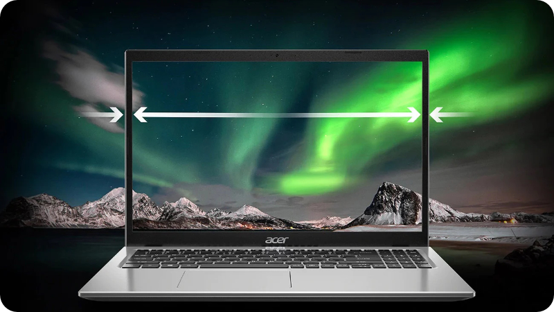 Matryca typu IPS cechuję się doskonałym kątem patrzenia zarówno w pionie, jak i poziomie. Ponadto, idealnie odwzorowane kolory oraz świetny kontrast obrazu sprawiają, że jest to ekran o wszechstronnym zastosowaniu. Sprawdzi się on zarówno w domu, jak i przy projektowaniu graficznym. Koniec z ograniczeniami, praktycznie bezramkowy wyświetlacz laptopa Acer pozwala Ci skupić się na pracy i jeszcze bardziej wciągnąć się w rozgrywkę.