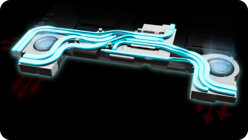 Specjalnie zaprojektowany system chłodzenia, który odprowadza ciepło zarówno z procesora, jak i układu graficznego. Wykorzystuje on siedem ciepłowodów, które gwarantują uzyskanie przez komputer maksymalnej wydajności nawet podczas grania w najbardziej wymagające gry.
