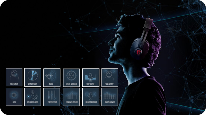 Popraw przestrzenny dźwięk 3D generowany w grze i ciesz się całkowitą kontrolą nad muzyką, ścieżką dźwiękową w filmach oraz rozmowami podczas wideokonferencji i chatów.