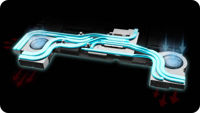 Specjalnie zaprojektowany system chłodzenia, który odprowadza ciepło zarówno z procesora, jak i układu graficznego. Wykorzystuje on siedem ciepłowodów, które gwarantują uzyskanie przez komputer maksymalnej wydajności nawet podczas grania w najbardziej wymagające gry.