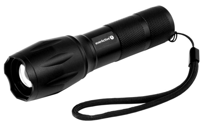 Latarka posiada 5 trybów pracy: 100%, 50%, 25%, migający i SOS, soczewkę generującą równomierny strumień światła oraz możliwość płynnej regulacji skupienia wiązki światła. Do zasilania latarki można stosować zarówno baterie alkaliczne i akumulatorki. Obudowa latarki everActive FL-600 została wykonana z wytrzymałego aluminium pomalowanego na czarny kolor, dzięki gumowym o-ringom jest odporna na warunki atmosferyczne.