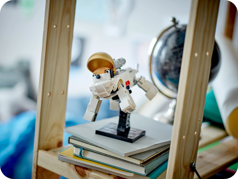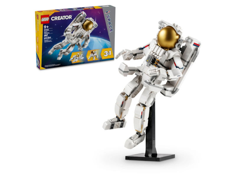 Wyrusz w kosmiczną podróż z zestawem LEGO Creator 3 w 1 Astronauta 31152, który zapewnia dzieciom aż trzy możliwości budowania i jeszcze więcej okazji do kreatywnej zabawy. Z 647 elementów mogą stworzyć imponującą figurkę astronauty, kosmicznego psa lub odrzutowy statek kosmiczny, dzięki czemu każda zabawa staje się nową międzygalaktyczną przygodą. Model astronauty zachwyca ruchomymi nogami, rękami, stopami i palcami, a także odczepianym plecakiem odrzutowym i otwieraną złotą osłoną hełmu, pod którą znajduje się miejsce na minifigurkę (niedołączoną do zestawu). Po zbudowaniu figurka ma 27 cm wysokości, co pozwala w pełni zanurzyć się w kosmiczny świat i tworzyć własne historie o odkrywaniu odległych planet.