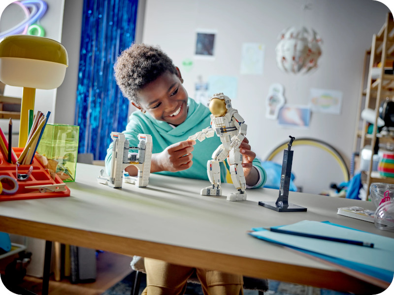 Zestaw można przebudować w kosmicznego psa z ruchomym ogonem i łapami, co sprzyja rozwijaniu zdolności manualnych, koordynacji wzrokowo-ruchowej oraz twórczego myślenia. Alternatywnie dzieci mogą złożyć odrzutowy statek kosmiczny, by stoczyć emocjonujące bitwy i przeżyć ekscytujące przygody w przestrzeni kosmicznej. Zestaw LEGO Creator 3 w 1 jest przeznaczony dla dzieci powyżej 9 roku życia i doskonale wspiera ich wyobraźnię, pozwalając tworzyć własne międzygalaktyczne opowieści. Dodatkowo zestaw można uzupełnić innymi modelami z serii Creator 3 w 1, aby jeszcze bardziej poszerzyć kosmiczną zabawę i budować kolejne fantastyczne konstrukcje.