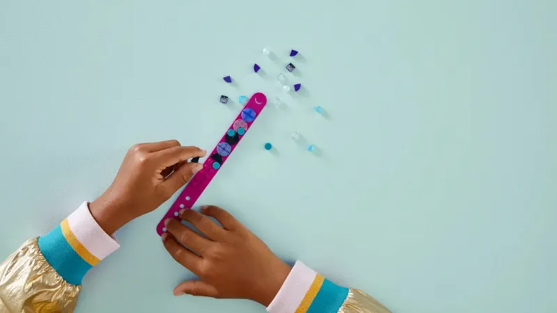 Znasz miłośnika fantastyki lub jednorożców w wieku od ośmiu lat, który uwielbia też magiczną sztukę i projektowanie? Podaruj mu zestaw LEGO® DOTS Jednorożce rządzą — bransoletka (41802). Opakowanie zawiera regulowaną bransoletkę w kolorze magenty, mnóstwo kolorowych, błyszczących i brokatowych płytek, metaliczne płytki z rogami jednorożca i opalizującymi skrzydłami, a także „diamentowe” elementy, które dodają biżuterii blasku. Pudełko zawiera też propozycje dekoracji, by rozpalić dziecięcą kreatywność.