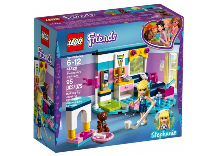 Zestaw do budowania LEGO® Friends Sypialnia Stephanie ustawiony jest na niebieskiej podstawce w kształcie serca i doskonale oddaje sportową osobowość Stephanie. W sypialni jest tor do minigolfa z piłką i kijem golfowym, mała buda dla psa, budzik, puchar za osiągnięcia sportowe Stephanie oraz smartfon, z którego można dzwonić do przyjaciół. W zestawie minilaleczka oraz figurka pieska.