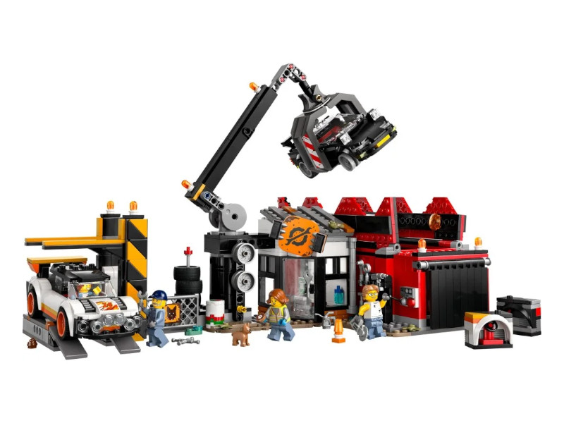 Zestaw LEGO® City Złomowisko z samochodami to doskonała propozycja dla dzieci od siódmego roku życia, które chcą odkrywać fascynujący świat recyklingu i zabawy z pojazdami. W zestawie znajduje się wszystko, co potrzebne do stworzenia realistycznego złomowiska — działający dźwig z chwytakiem, zgniatarka zamieniająca samochody w kostki po naciśnięciu dźwigni, a także budynek biurowy, w którym można sprzedawać odzyskane części. Dodatkowo w komplecie są dwa klasyczne samochody z lat 80., które można demontować, oraz cztery minifigurki pracowników złomowiska wyposażone w narzędzia, takie jak młotek, klucze czy wiertarka.