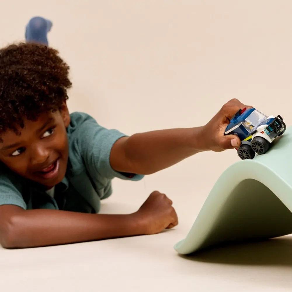 Rozpocznij pełne akcji policyjne przygody dzięki zestawowi LEGO City Pojazdy - Ciężarówka policyjna (60481) dla dzieci w wieku od pięciu lat. Ta kompaktowa zabawka w postaci policyjnej ciężarówki z fajnymi felgami, niskoprofilowymi gumowymi oponami, zderzakiem, kratami więziennymi i zabawkowymi światłami awaryjnymi oferuje młodym konstruktorom ciekawy sposób na odkrywanie świata LEGO City. Zestaw zawiera też minifigurkę małego policjanta LEGO City Pojazdy, która idealnie pasuje do kabiny kierowcy i inspiruje do zabawy w odgrywanie ról.