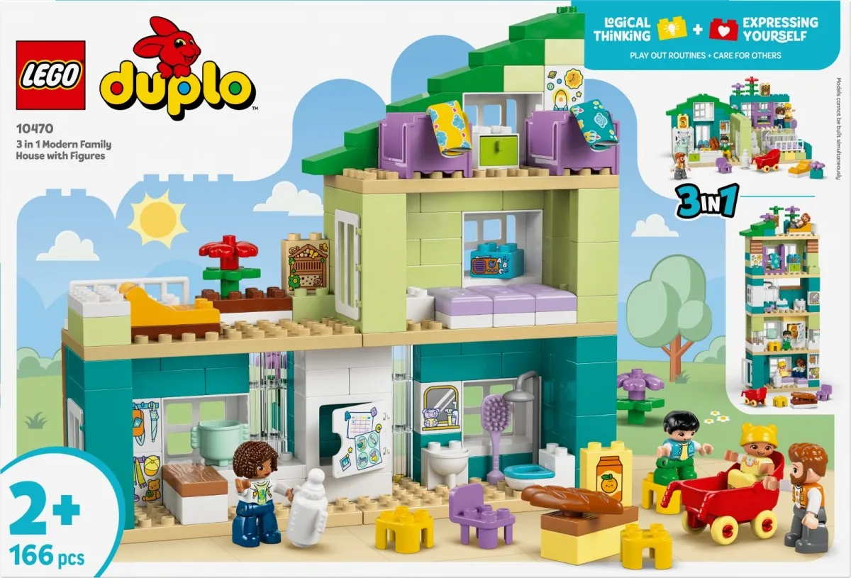 Dzięki zestawowi Nowoczesny dom rodzinny 3 w 1 z figurkami (10470) dzieci w wieku od dwóch lat mogą cieszyć się kreatywną zabawą w odgrywanie ról, odkrywając rodzinne zwyczaje. Dzięki czterem figurkom - dwojgu rodzicom, dziecku i niemowlęciu - ta interaktywna zabawka pozwala maluchom rozwijać umiejętności społeczne i emocjonalne podczas zabawy domkiem.