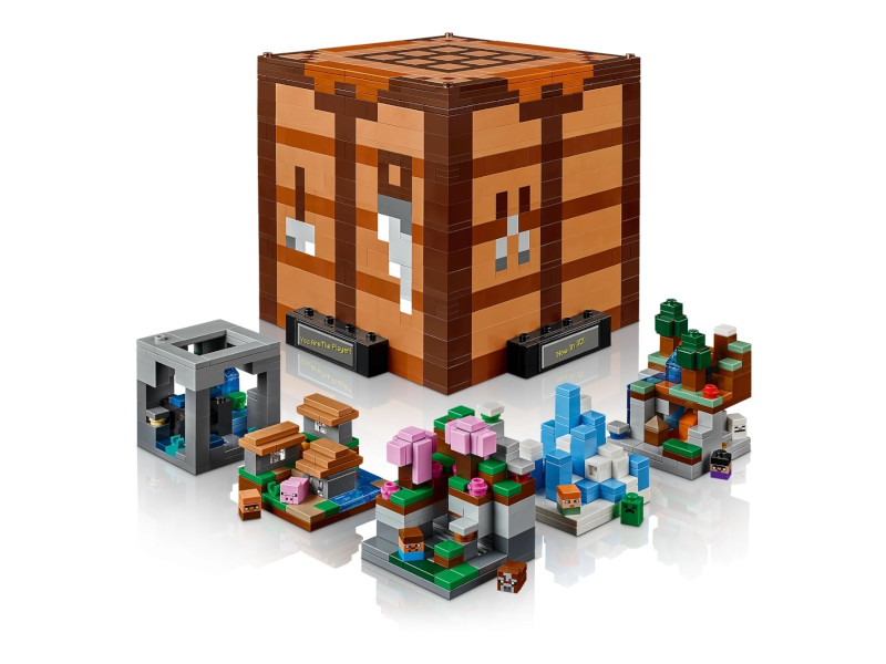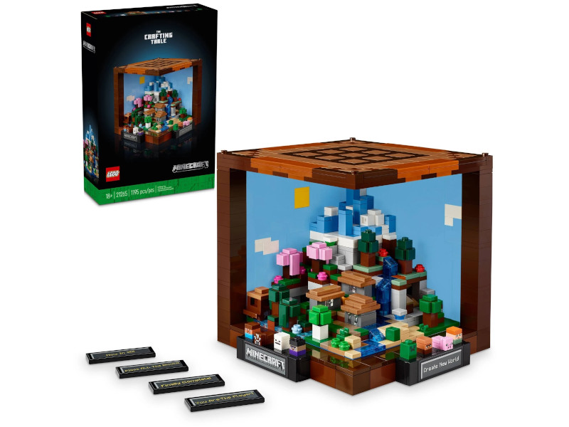 Uczcij 15-lecie kultowej gry Minecraft wyjątkowym zestawem konstrukcyjnym LEGO® Minecraft® Stół warsztatowy (21265) – stworzonym specjalnie dla dorosłych fanów gry i doświadczonych konstruktorów. Ten kolekcjonerski model to prawdziwy hołd dla kreatywności, która od lat inspiruje miliony graczy na całym świecie. Model przedstawia słynny stół warsztatowy z gry, będący sercem każdego świata Minecraft. W jego wnętrzu ukryto pięć minimodułów z aż 12 szczegółowymi biomami, które fani od razu rozpoznają: mroczna głębia, bujna jaskinia, bagno, równiny, las, wiśniowy gaj, pustynia, tajga, śnieżna tajga, jaskinia naciekowa, lodowe kolce i rzeka.
