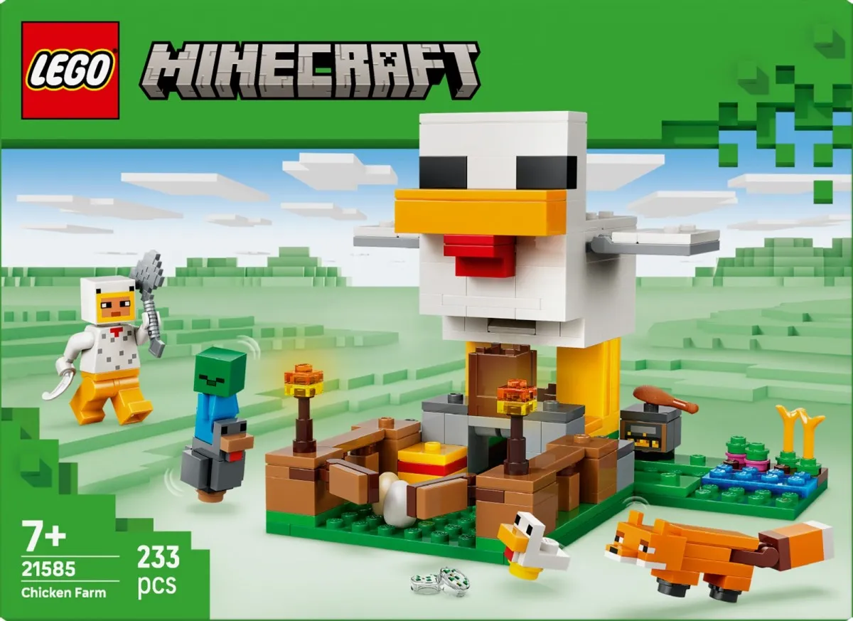 Opiekuj się kurczakami i uprawiaj rośliny dzięki zestawowi LEGO Minecraft Farma kurczaków (21585) dla dziewczynek i chłopców w wieku od siedmiu lat. Ten zestaw konstrukcyjny dla dzieci stanowi wyzwanie dla graczy, którzy muszą zaopiekować się zimnym kurczakiem i małym kurczakiem wraz z minifigurką miłośnika kurczaków, jednocześnie radząc sobie z lisem (który lubi jeść zimne kurczaki) i małym zombie (który lubi jeździć na kurczakach).