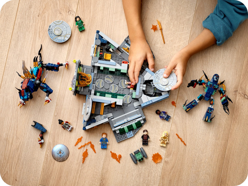 Zestaw LEGO® Marvel 76156 Domo powstaje to ekscytująca przygoda w świecie superbohaterów inspirowana filmem „The Eternals” ze studia Marvel. Ten pełen detali zestaw pozwala dzieciom odkrywać wnętrze niezwykłego statku kosmicznego Przedwiecznych oraz odgrywać emocjonujące bitwy z potężnymi Dewiantami. Otwierane trzy boki statku ujawniają bogato wyposażone wnętrze, w tym kokpit, zbrojownię, laboratorium i inne pomieszczenia, co stwarza wiele możliwości kreatywnej zabawy. W komplecie znajduje się sześć minifigurek Przedwiecznych: Makkari, Ikaris, Thena, Sersi oraz wyłączne dla tego zestawu postacie Druiga i Phastosa. Dodatkowo do dyspozycji dzieci są dwie figurki Dewiantów, w tym przerażający przywódca Kro.