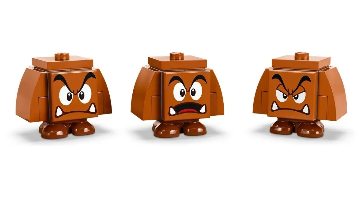 - Trzy figurki Goombów LEGO Super Mario - można je ustawiać na sobie