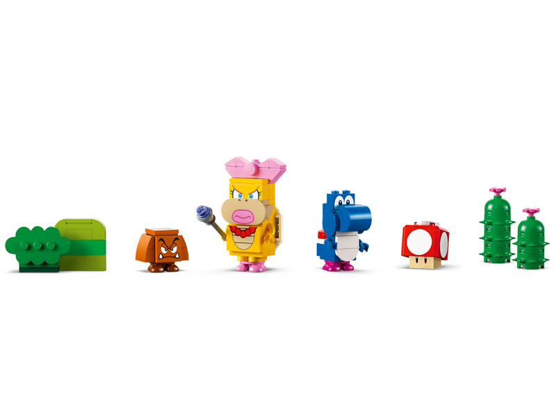 Zestaw składa się z 588 elementów do którego należą drzewa, kwiaty, wzgórza i piramidy, trzy kolorowe owoce, oraz postacie z Super Mario: Wendy, niebieski Yoshi i Goomba. To świetny prezent dla dzieci w wieku od sześciu lat, które mają już zestaw startowy (71360, 71387, lub 71403 - wymagane do interaktywnej zabawy).