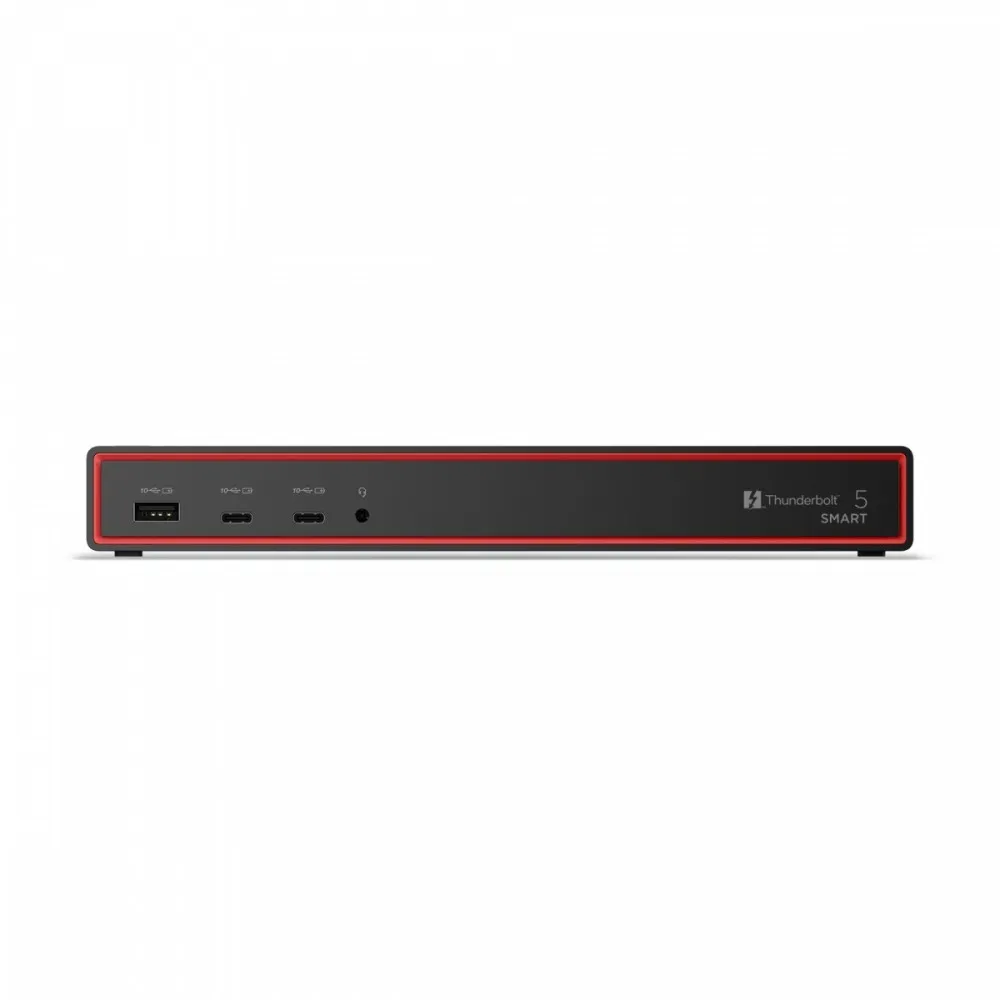 - ThinkPad Thunderbolt 5 Smart Dock 7500 z najnowocześniejszą technologią Thunderbolt 5 wynosi wydajność łączności na nowy poziom. Dzięki przepustowości do 120 Gb/s możesz skonfigurować do 4 wyświetlaczy o ultrawysokiej rozdzielczości: trzy wyświetlacze o ultrawysokiej rozdzielczości 8K 60 Hz i jeden o wysokiej rozdzielczości 4K 60 Hz lub dwa wyświetlacze 4K 240 Hz i dwa o wysokiej częstotliwości odświeżania 4K 120 Hz. Wszystko zależy od Ciebie. W pełni rozszerz możliwości swojego notebooka mobilnej stacji roboczej do roli stacji zasilania z różnymi urządzeniami peryferyjnymi. Moc ładowania do 180 W z technologią PD 3.1 umożliwia szybkie ładowanie notebooka, co pozwala z łatwością znacząco zwiększyć potencjał Twojej przestrzeni roboczej.
