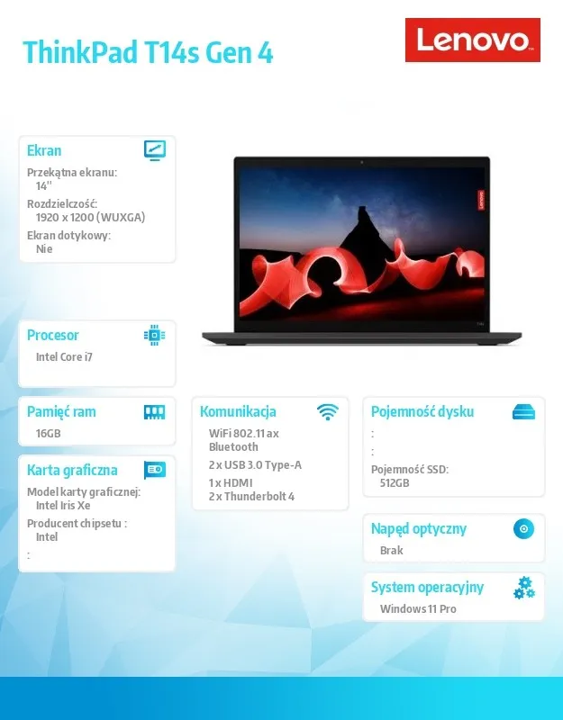 Laptopy i TabletyLaptopyLenovo Ultrabook ThinkPad T14s G4 21F6004EPB W11Pro i7-1355U/16GB/512GB/INT/14.0 WUXGA/Deep Black/3YRS Premier Support + CO2 Offset