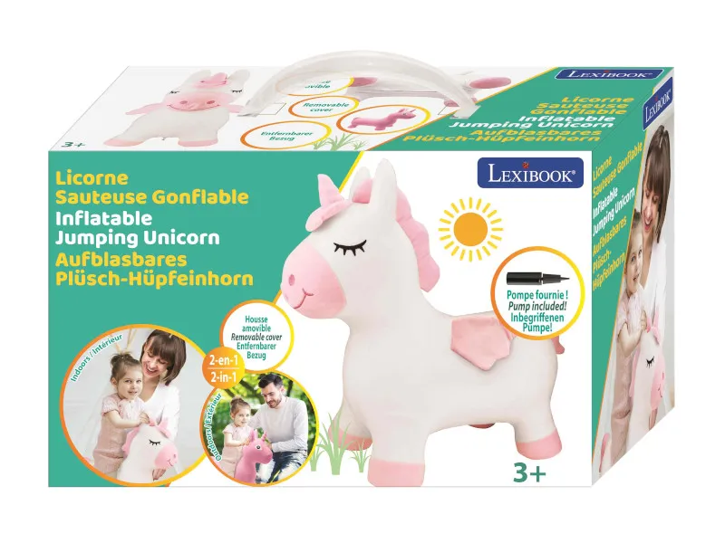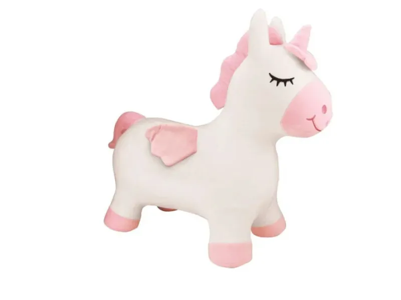 Dmuchany konik do skakania to świetna zabawka, która zachęci dziecko do ćwiczeń i rozwinie jego zdolności motoryczne. Produkt na czterech nogach jest bardzo stabilny i pozwala na wiele godzin skakania i podskakiwania z zachowaniem pełnego bezpieczeństwa, natomiast jego ergonomiczne siedzisko zapewni dziecku wygodę. Można go używać zarówno w pomieszczeniach, jak i na zewnątrz. Zabawkę możesz łatwo i szybko nadmuchać dzięki pompce. Produkt jest przeznaczony dla dzieci w wieku powyżej 3 lat. Zaleca się zabawę pod opieką dorosłej osoby.