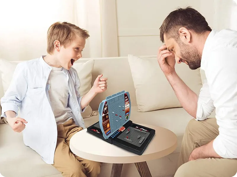 Elektroniczna gra w Bitwę Morską z efektami świetlnymi i dźwiękowymi to wersja znanej od pokoleń gry w okręty. Gra zapewni zabawę zarówno starszym, jak i młodszym uczestnikom. Cel pozostaje taki sam, jak w tradycyjnej grze - należy zatopić wszystkie statki przeciwnika. Każdy z graczy ma do dyspozycji konsolę, dzięki której może wydawać polecenia swojej flocie. Gra losowo wybierze, który z graczy zaatakuje jako pierwszy. Gracz atakujący wybiera pozycję ataku, poprzez wprowadzenie litery i liczby współrzędnych celu i naciśnięcie przycisku strzelania. Jeśli okręt przeciwnika zostanie trafiony, gra odnotuje trafienie i włączy odgłos ekspozji i sygnał świetlny. W przeciwnym wypadku dostajemy informację o pudle. Bitwa Morska to świetny sposób na wspólne spędzanie czasu z rodziną, natomiast dziecko może dzięki niej rozwijać strategiczne myślenie.