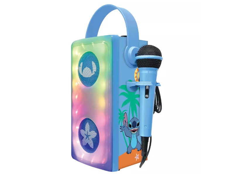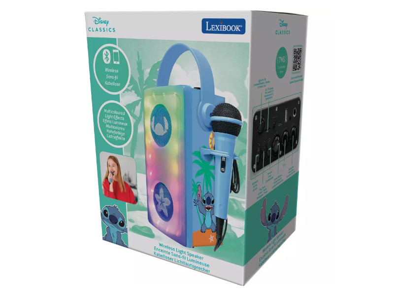 LEXIBOOK Głośnik Bluetooth® Disney Stitch z mikrofonem i efektami świetlnymi Rozkręć każdą imprezę z uroczym głośnikiem Bluetooth® inspirowanym postacią Stitcha z Disney’a! Ten wyjątkowy gadżet to nie tylko sprzęt audio, ale także świetny element dekoracyjny i źródło doskonałej zabawy. Dzięki technologii Bluetooth® możesz łatwo połączyć głośnik ze swoim telefonem, tabletem lub komputerem, aby cieszyć się ulubioną muzyką w doskonałej jakości. Wbudowany mikrofon pozwala na świetną zabawę w karaoke i śpiewanie ulubionych piosenek. Efekty świetlne LED dodają magicznego klimatu – dynamiczne światła synchronizują się z muzyką, tworząc niezapomnianą atmosferę. Kompaktowy i lekki design sprawia, że głośnik można łatwo zabrać wszędzie, od imprezy, przez piknik, aż po wycieczkę. Wbudowana bateria zapewnia wiele godzin działania, a prosty w obsłudze panel sterowania sprawia, że korzystanie z urządzenia to czysta przyjemność. Idealny prezent dla fanów filmu "Lilo i Stitch" i wszystkich miłośników Disneya.