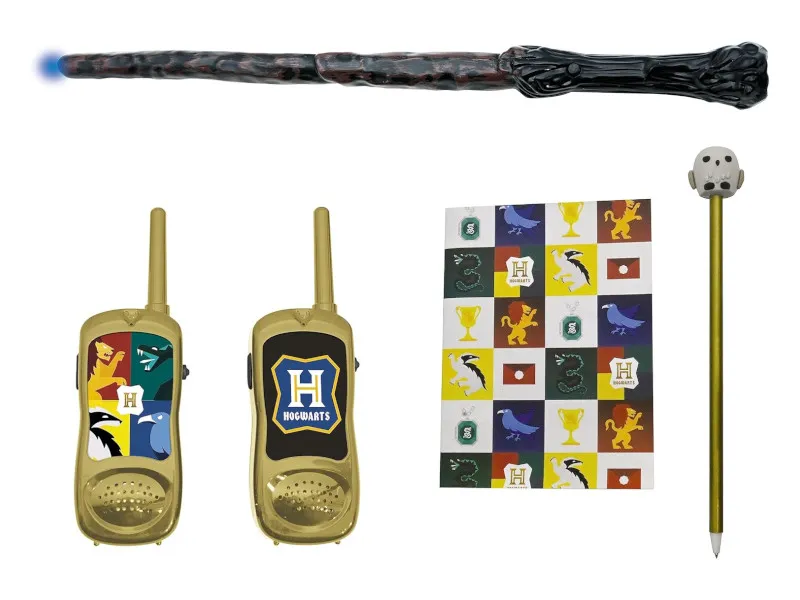 Wspaniała para krótkofalówek prezentujący motyw z niezwykłego świata Harry'ego Pottera do komunikowania się ze znajomymi w trakcie zabawy. Dzięki tej parze krótkofalówek Twoje dziecko może godzinami bawić się i komunikować ze znajomymi. Zasięg nadawania wynosi aż 120 metrów na otwartej przestrzeni, dzięki czemu pozostaniesz w kontakcie z przyjaciółmi podczas poszukiwania nowych przygód. Dodatkowo krótkofalówki zostały wyposażone w elastyczną antenę i klips do paska, dzięki czemu można zabrać je dosłownie wszędzie.