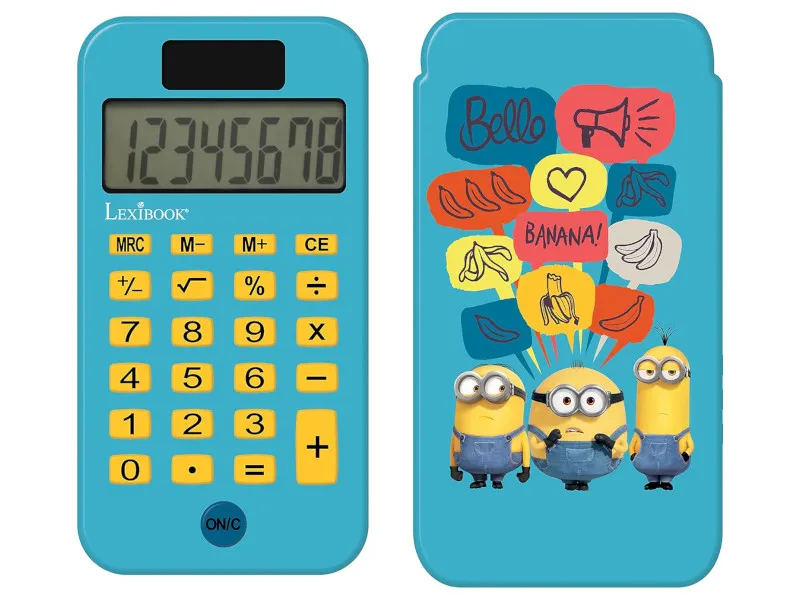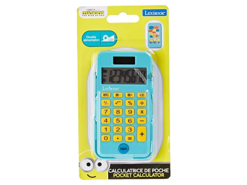 Kalkulator od firmy Lexibook jest idealną pomocą obliczeniową. Pomaga w klasycznych i złożonych zadaniach arytmetycznych i oblicza wyniki za pomocą 23 klawiszy i 8-cyfrowego wyświetlacza. Jego kompaktowe rozmiary sprawią, że możesz trzymać go w kieszeni i nosić gdzie chcesz. Jego ekologiczny wyświetlacz zasilany jest energią słoneczną i automatycznie wyłącza się po krótki okresie bezczynności. Niesamowity design kalkulatora z postaciami z Minionków zachwyci młodszych użytkowników.