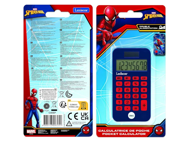 Kalkulator od firmy Lexibook jest idealną pomocą obliczeniową. Pomaga w klasycznych i złożonych zadaniach arytmetycznych i oblicza wyniki za pomocą 23 klawiszy i 8-cyfrowego wyświetlacza. Jego kompaktowe rozmiary sprawią, że możesz trzymać go w kieszeni i nosić gdzie chcesz. Jego ekologiczny wyświetlacz zasilany jest energią słoneczną i automatycznie wyłącza się po krótki okresie bezczynności. Niesamowity design kalkulatora z postaciami ze Spider-Man'a zachwyci młodszych użytkowników.