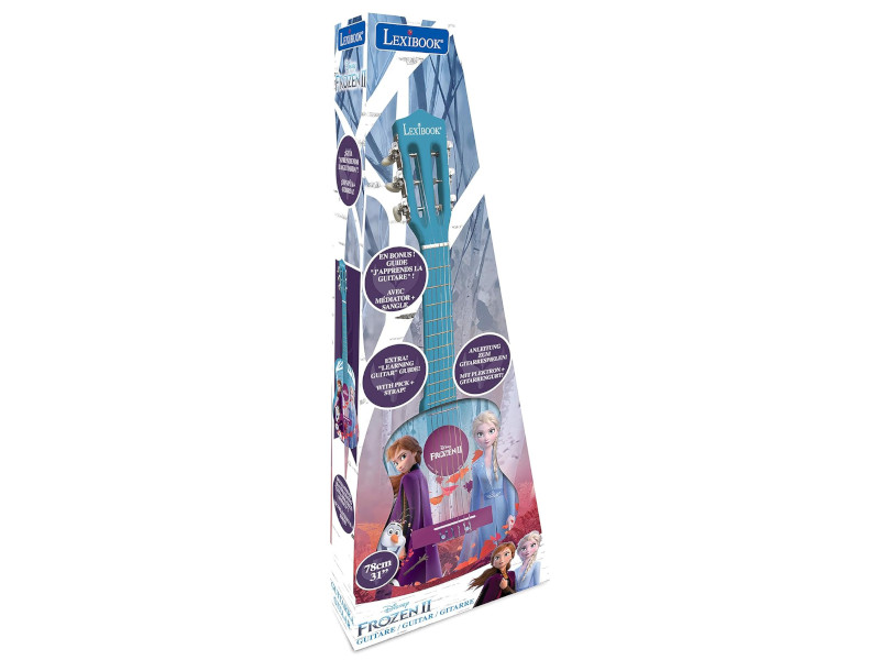 Chcesz aby twoje pociechy rozpoczeły swoją muzyczną przgodę ? W takim razie świetnie trafiłeś. Moja pierwsza gitara od Lexibook to idealny instrument na początek! Dodatkowo produkt ozdabia Grafika z popularnej serri filmowej pod tytułem Kraina Lodu. Zastosowanie wysokiej jakości materiałów przekłada sie na ciepłe i czyste brzmienie instrumentu. 6 nylonowych strun i kompaktowy rozmiar, sprawiają, że produkt od Lexibook jest idealnym towarzyszem twojego dziecka.