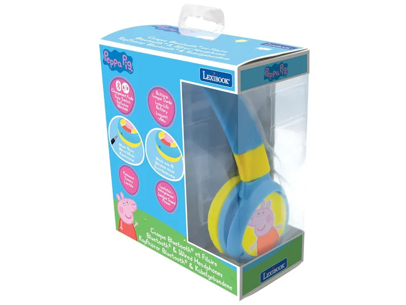 Słuchawki z niesamowitą stylistyką wzorowaną na popularnej serii bajek "Świnka Peppa " zachwycą każdego tego bohatera. Mogą odtwarzać muzykę w dwóch trybach: bezprzewodowym, łącząc się poprzez bluetooth, lub przewodowym poprzez podłączenie słuchawek do urządzenia przy pomocy kabla jack 3,5 mm, znajdującego się w zestawie. Słuchawki są bardzo lekkie, co sprawia, że można je zabrać wszędzie ze sobą, na przykład do szkoły lub na wycieczkę. Ponadto można z łatwością dostosować je do każdej głowy, a dzięki zastosowaniu miękkiego pałąka nosi się je bardzo wygodnie. Dzięki wbudowanemu akumulatorowi o pojemności 250 mAh masz możliwość słuchania muzyki aż do 4 godzin w trybie bezprzewodowym, a gdy się wyczerpie, możesz bez problemu naładować go za pomocą przewodu USB.