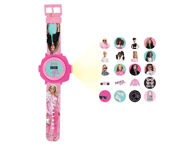 Ten wspaniały zegarek od firmy Lexibook z cyfrowym ekranem jest idealny dla dzieci, które nie umieją jeszcze odczytywać czasu. Wystarczy, że spojrzą na zegarek i już wiedzą, która jest godzina. Możliwe jest także wyświetlanie daty, poprzez naciśnięcie przycisku na ekranie zegarka. Urządzenie wyświetla 20 różnych projekcji z uniwersum Barbie. Jest idealne do komunikowania się z przyjaciółmi poprzez wysyłanie zakodowanych wiadomości dzięki projekcjom. Zegarek posiada także regulowaną bransoletę, idealną dla małych nadgarstków. Produkt jest przeznaczony dla dzieci w wieku powyżej 3 lat.