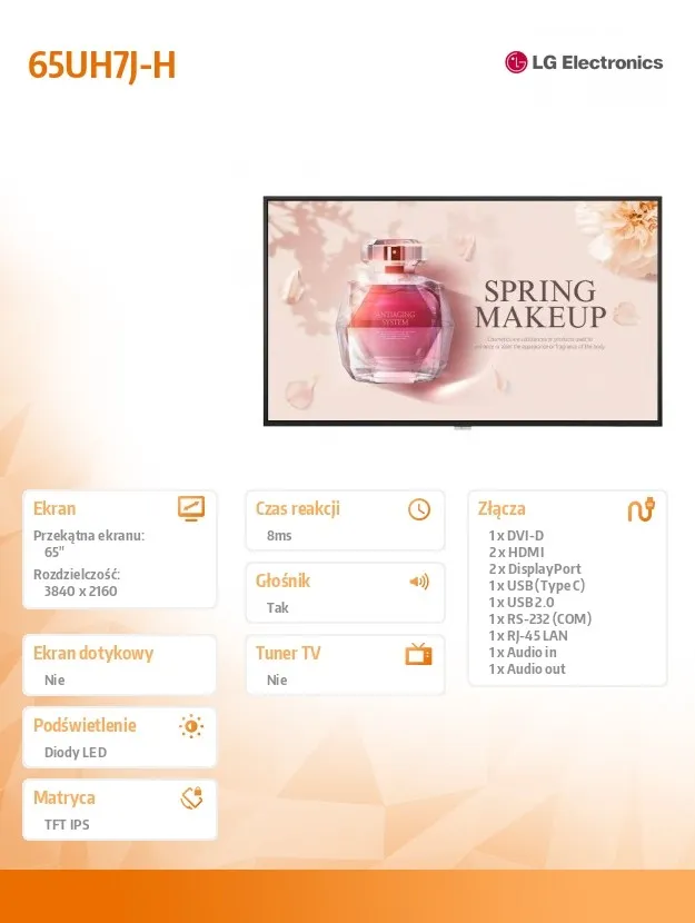 LG Electronics Monitor wielkoformatowy 65UH7J-H 65 cali UHD IPS 700cd/m2 24/7