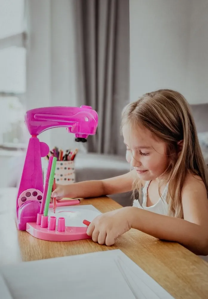 Pozwól swojemu dziecku wkroczyć do bajkowego uniwersum Księżniczek Disneya, gdzie nauka rysowania ulubionych bohaterek staje się fascynującą przygodą. Projektor LED w prosty sposób wyświetla wybrany obraz (jak Kopciuszek, Elsa, Roszpunka czy Bella) na kartce, umożliwiając łatwe obrysowanie konturów. To doskonały pierwszy krok w świecie plastyki, który buduje pewność siebie i zachęca do dalszych twórczych eksploracji.