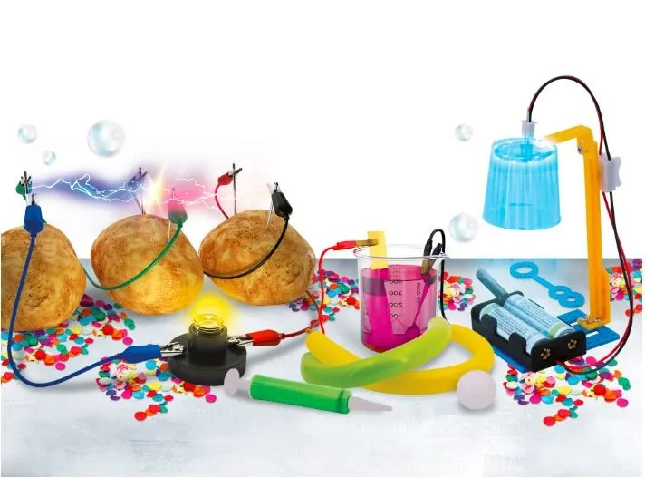 Wesoły zestaw naukowy, dzięki któremu opanujesz i odkryjesz wszystkie sekrety elektryczności, elektryczności statycznej i działania żarówki. Wiele prostych, zabawnych i bezpiecznych eksperymentów przy użyciu elementów z zestawu i przedmiotów, które łatwo można znaleźć w każdym domu.