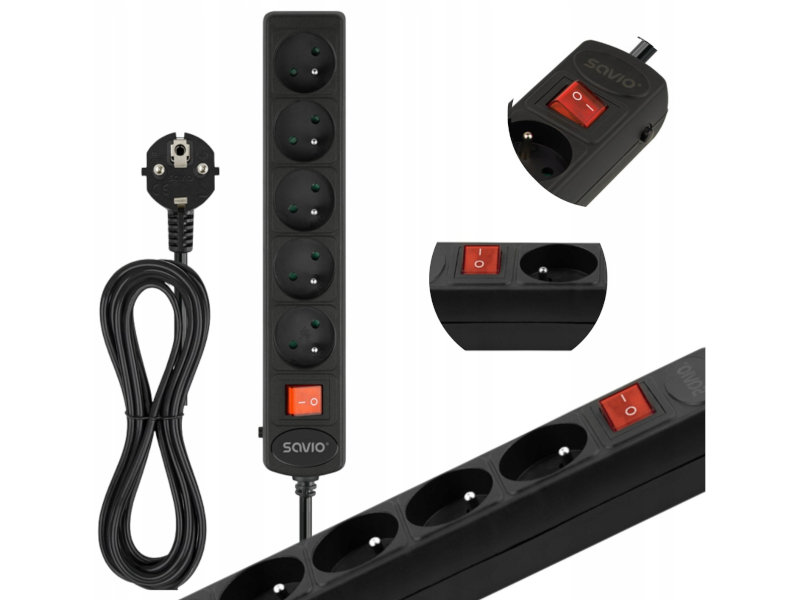 Komputery i podzespołyPodzespołyZasilaczeListwy zasilająceListwa przeciwprzepięciowa automatyczna SAVIO LZ-16 5 gniazd 1.8m miedziane