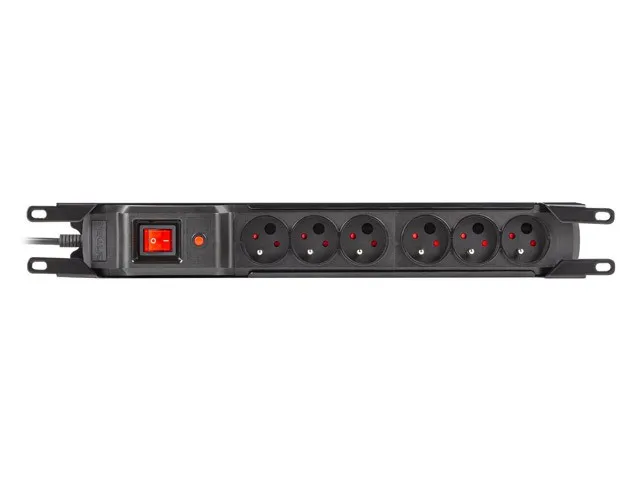 Listwa przeciwprzepięciowa rack 19cali M6 1,5m 6x230v czarna M6/15/R/CZ/IEC