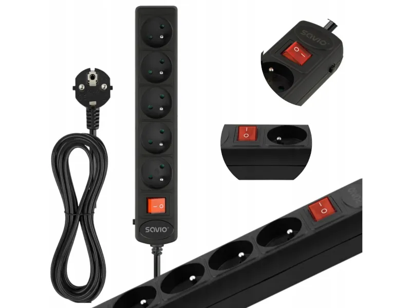 SAVIO LZ-18 to funkcjonalna i bezpieczna listwa przeciwprzepięciowa, zaprojektowana z myślą o ochronie i wygodzie użytkowania. Wyposażona w 5 gniazd z uziemieniem, pozwala na bezpieczne podłączenie kilku urządzeń jednocześnie, zapewniając stabilne połączenie i długą żywotność. Automatyczny bezpiecznik chroni listwę przed przeciążeniem – w razie potrzeby samoczynnie odcina zasilanie, a jego ponowne uruchomienie zajmuje tylko chwilę. Włącznik ON/OFF umożliwia szybkie odłączenie wszystkich urządzeń jednym ruchem, co przekłada się na oszczędność energii i większe bezpieczeństwo. Solidny przewód o długości 5 metrów z miedzianymi żyłami gwarantuje doskonałe przewodnictwo i elastyczność w rozmieszczeniu sprzętu. SAVIO LZ-18 – niezawodna ochrona, wygoda i jakość, na której możesz polegać każdego dnia.