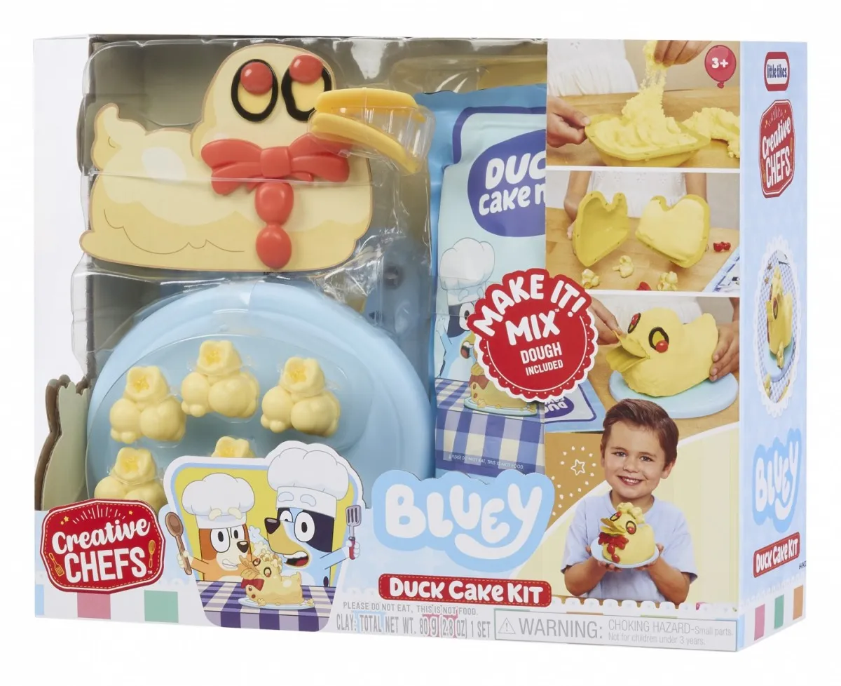Zestaw Creative Chefs Bluey - Ducky Cake Kit daje dzieciom możliwość rozwijania kreatywności. Dzięki realistycznym, funkcjonalnym elementom dzieci mogą samodzielnie przygotować swoje danie i stworzyć własne repliki ulubionego przysmaku z bajki.