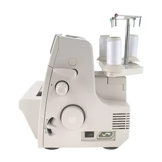 Oznaczenia kolorystyczne i numeracja kolejnych chwytaczy oraz czytelna instrukcja pod pokrywą osłaniającą ułatwiają nawlekanie oraz regulację urządzenia. W szufladce na akcesoria znajduje się podstawowe wyposażenie do konserwacji oraz pęseta, która pomaga w procesie nawlekania nici. Model wyposażony jest również w delikatną osłonę chroniącą go przed kurzem i brudem.