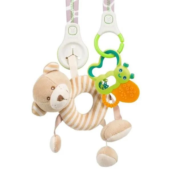 - 2 haczyki do przymocowania niezbędnych akcesoriów dla dziecka: smoczków, zabawek, kocyków i nie tylko