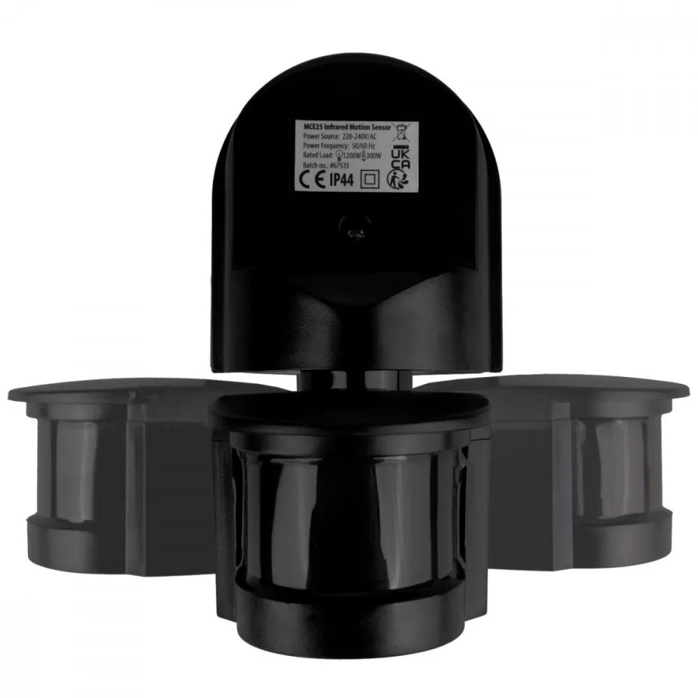 Maclean Czujnik ruchu i zmierzchu MCE25 B/B 180 stopni, max 1200W, z czarną przesłona, 5-12m