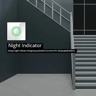 Włącznik jest wodoodporny, dzięki czemu może być zamontowany w pomieszczeniach o zwiększonej wilgotności, jak kuchnia lub łazienka. Kolorowe podświetlenie LED pozwala na zlokalizowanie włącznika w ciemności.
