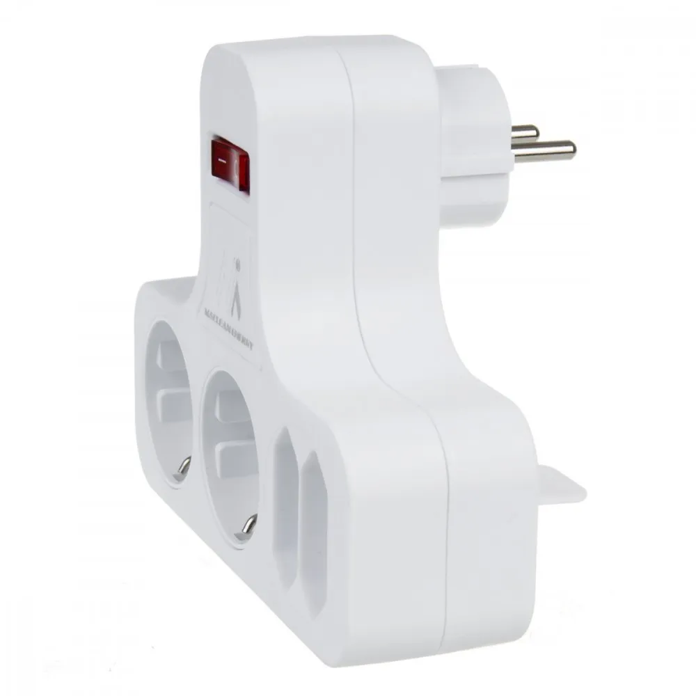 Poczwórne z wyłącznikiem, nóżką stabilizującą. Typu Schuko, 2x2,5A, 2x16A, MCE224 G
