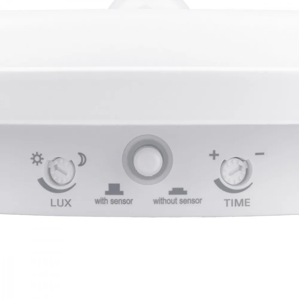 Zintegrowany czujnik ruchu PIR wykrywa obecność osób w zasięgu do 9 metrów oraz pod kątem 140°, zapewniając skuteczne działanie w szerokim obszarze. Regulowany czujnik zmierzchu umożliwia pracę lampy zarówno w dzień, jak i w nocy w zależności od indywidualnych ustawień użytkownika. Dzięki temu lampa może reagować na ruch niezależnie od pory dnia lub działać wyłącznie po zmroku. Dzięki możliwości wyłączenia czujnika ruchu lampa oferuje pełną elastyczność działania, dostosowaną do różnych scenariuszy użytkowania.
