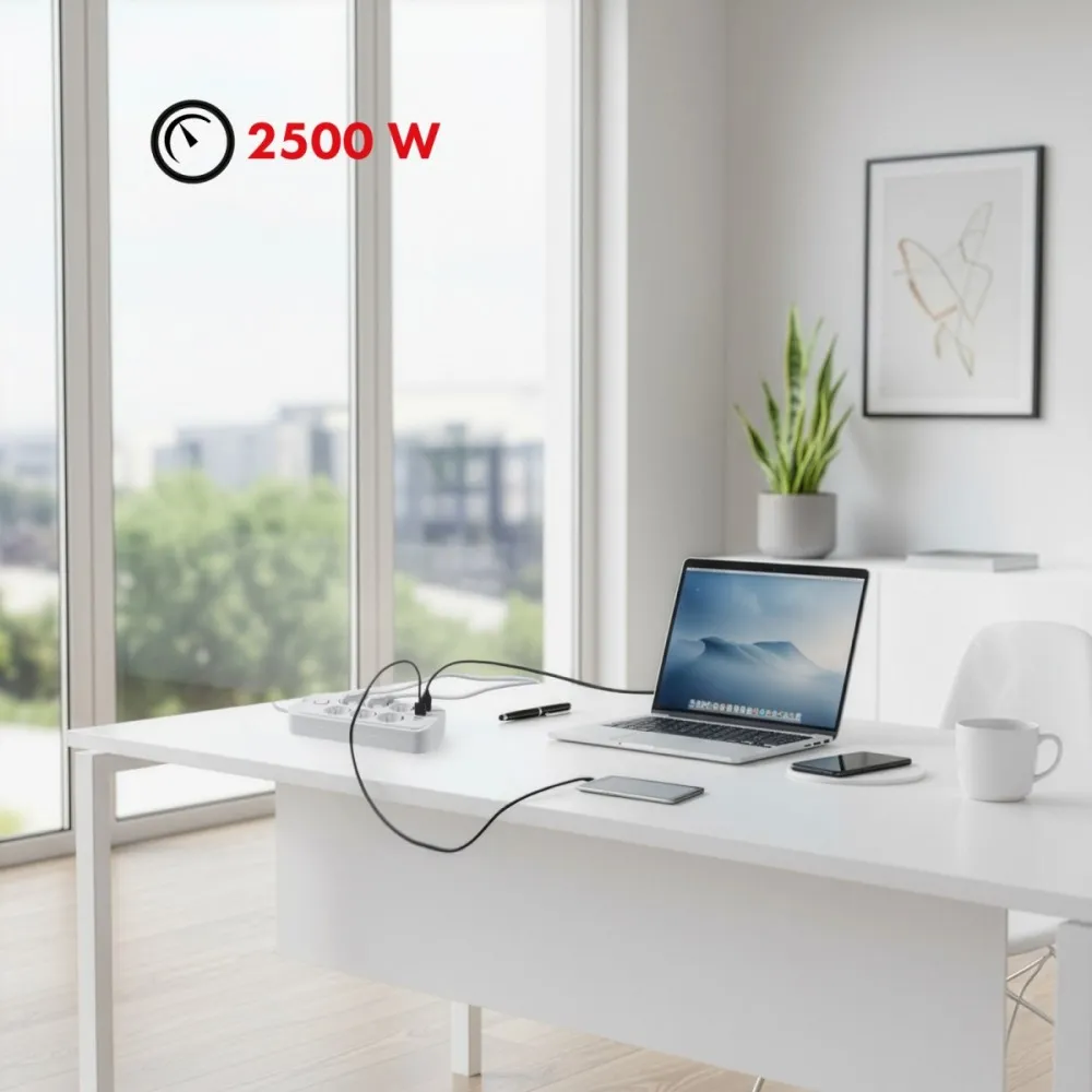 Nowoczesna listwa zasilająca z 6 gniazdami, 4 portami USB i 1 portem USB-C to zaawansowane rozwiązanie dla użytkowników, którzy potrzebują jednocześnie zasilić wiele urządzeń. Idealnie sprawdzi się w biurach, pracowniach, pokojach gamingowych i wszędzie tam, gdzie liczy się duża liczba dostępnych gniazd oraz szybkie ładowanie sprzętów mobilnych. Wysoka moc 2500W i solidne wykonanie gwarantują bezpieczeństwo i niezawodność każdego dnia.
