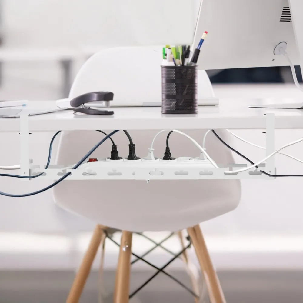 Zadbaj o porządek w przestrzeni roboczej dzięki organizerowi na listwę kablową montowanemu pod biurkiem. Ten praktyczny uchwyt z regulowaną długością od 433 do 728 mm pozwala dopasować się do różnych wymiarów blatów oraz długości listw zasilających. Umożliwia uporządkowanie przewodów i zamocowanie listwy zasilającej bez konieczności wiercenia czy trwałej ingerencji w mebel. Dzięki zaciskowemu systemowi montażu można go łatwo przymocować do blatu, a w razie potrzeby również szybko zdemontować lub przemieścić. Organizer świetnie sprawdzi się w domowym biurze, pokoju gracza lub w miejscu pracy.