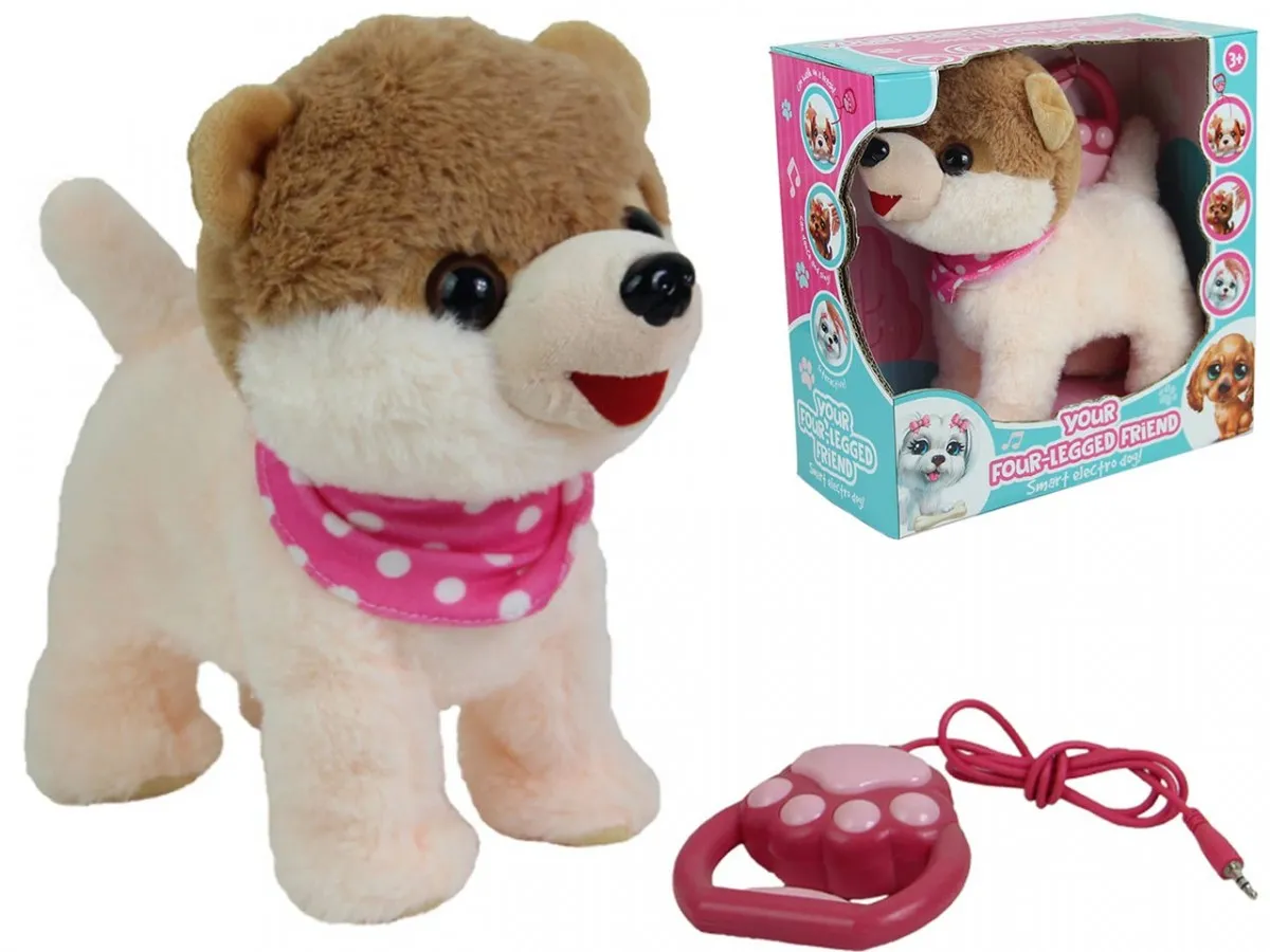 - W zestawie znajduje się pilot w kształcie psiej łapki z przewodem: naciśnij przycisk piesek rusza do przodu; zatrzymuje się po zwolnieniu.