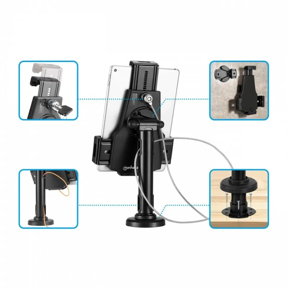 Laptopy i TabletyAkcesoria do tabletówUchwytyManhattan Stojak do tabletu 7,9-10,5 cala z zamkiem i linką