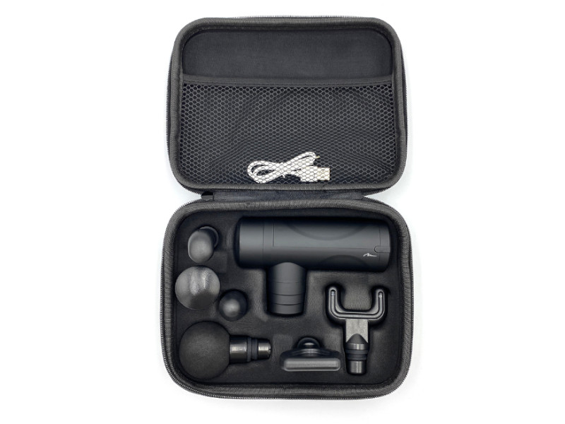 Urządzenie Massage Gun zapewnia profesjonalny masaż w domowym zaciszu. Rozluźnij mięśnie po treningu lub zrelaksuj się po pracy. 6 poziomów regulacji intensywności pozwala Ci przejść z delikatnego masażu do intensywnej stymulacji. Możesz wybrać prędkość od 1800 aż do 3200 uderzeń na minutę. Użytkownik ma również możliwość dopasowania głowicy masującej dzięki czemu wygoda podczas użytkowania jest gwarantowana. W zestawie znajduje się sześć głowic, które umożliwia różne sposoby masażu odpowiednie dla poszczególnych grup mięśni. Dodatkowo, masażer cechuje się niską wagą i kompaktowymi rozmiarami, co sprawia, że użytkowanie urządzenia jest niezwykle proste i przyjemne.