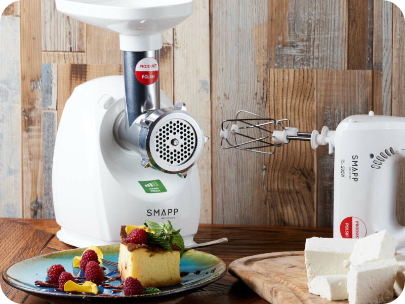 Maszynka do mięsa SMAPP 489.8 to niezawodne urządzenie kuchenne, które łączy w sobie solidną konstrukcję, wysoką wydajność i wszechstronność zastosowań. Wyposażona w wytrzymałą, metalową komorę mielenia, radzi sobie nie tylko z mięsem, ale również z innymi produktami spożywczymi, takimi jak czerstwy chleb, mak czy ciecierzyca. Dzięki odporności na wilgoć i solidnym materiałom maszynka doskonale sprawdza się przy codziennym użytkowaniu, a dwustronny nożyk gwarantuje precyzyjne i szybkie mielenie różnych składników. To idealne narzędzie dla osób, które chcą przygotowywać własne wędliny, kiełbasy czy domowe pasty. Na szczególną uwagę zasługuje wydajność urządzenia – maszynka jest w stanie przemielić aż 2,5 kg mięsa w ciągu jednej minuty, co czyni ją jedną z najszybszych w swojej klasie. Dzięki temu przygotowanie większych porcji pasztetów, hummusów, farszów czy nawet serników staje się szybkie i bezproblemowe.
