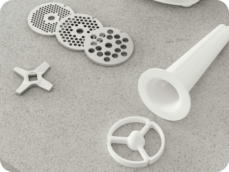 | Dołączone akcesoria: | Sitko o średnicy otworów 2.7 mm, Sitko o średnicy otworów 4 mm, Sitko o średnicy otworów 8 mm, Nasadka masarska, Popychacz, Dwustronny nóż, Wkładka dystansowa, Misa, Sprzęgło, Instrukcja obsługi w języku polskim, Karta gwarancyjna |