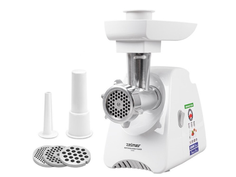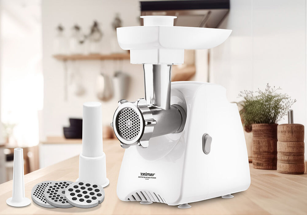 Maszynka do mielenia mięsa Zelmer ZMM5801P to wszechstronne urządzenie kuchenne, które z łatwością radzi sobie z mieleniem różnorodnych produktów. Silnik o mocy 1500 W zapewnia szybkie i skuteczne mielenie mięsa, co sprawia, że maszynka Zelmer ZMM5801P jest idealnym rozwiązaniem dla domowych kuchni. Solidna konstrukcja z wytrzymałych materiałów gwarantuje długą żywotność urządzenia. Metalowe elementy mielące i wysokiej jakości plastikowa obudowa są odporne na uszkodzenia. W zestawie znajdują się trzy sitka ze stali nierdzewnej o różnej wielkości otworów (drobne, średnie i grube), co umożliwia dopasowanie stopnia rozdrobnienia mięsa do różnych przepisów. Dodatkowo, maszynka posiada nasadkę do kiełbas oraz tarki do warzyw.