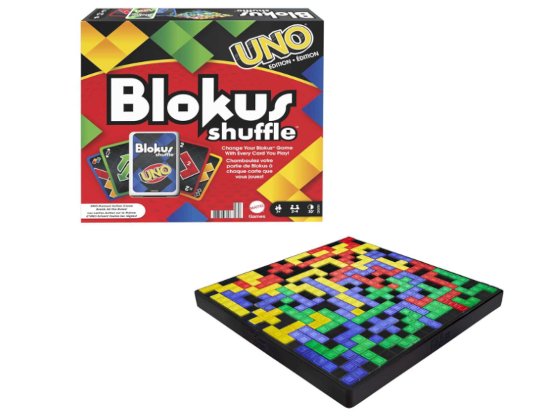 Blokus Shuffle to połączenie klasycznej gry strategicznej Blokus z talią kart specjalnych w stylu UNO! Blokus Shuffle: UNO zawiera karty specjalne inspirowane grą karcianą UNO, które nadają rozgrywce nieoczekiwany przebieg. Nadal obowiązuje zasada Blokus – elementy muszą się stykać z innymi elementami tego samego koloru tylko rogami – jednak jedynie do momentu, gdy do gry wchodzą karty specjalne UNO, które łamią wszelkie zasady.